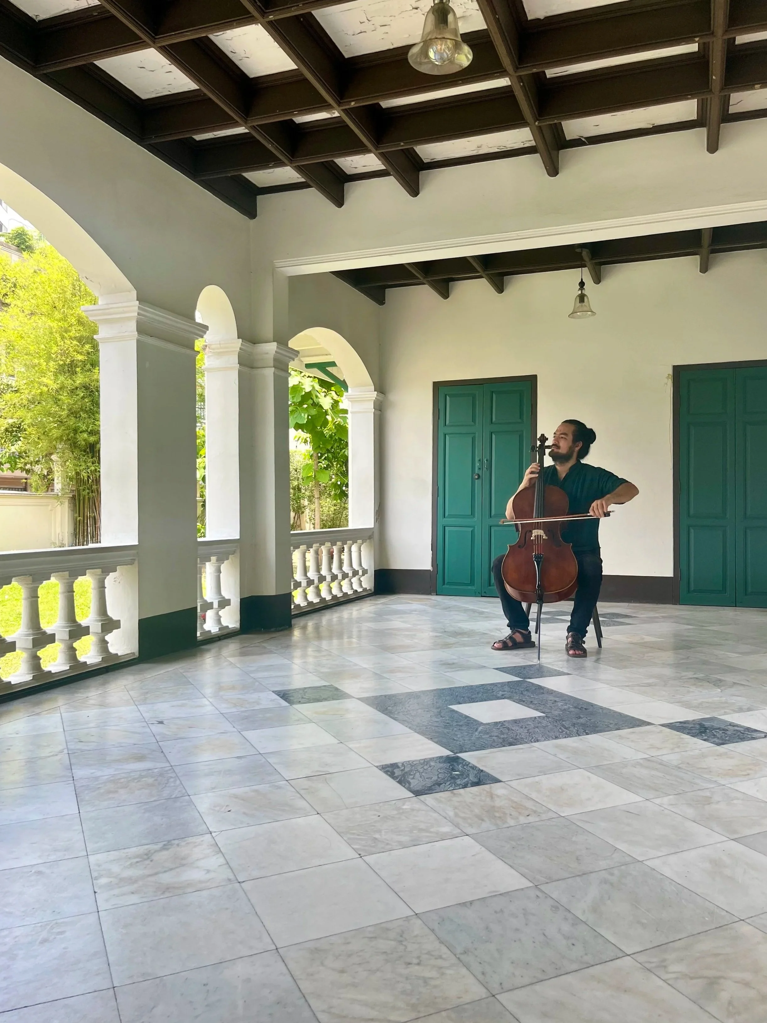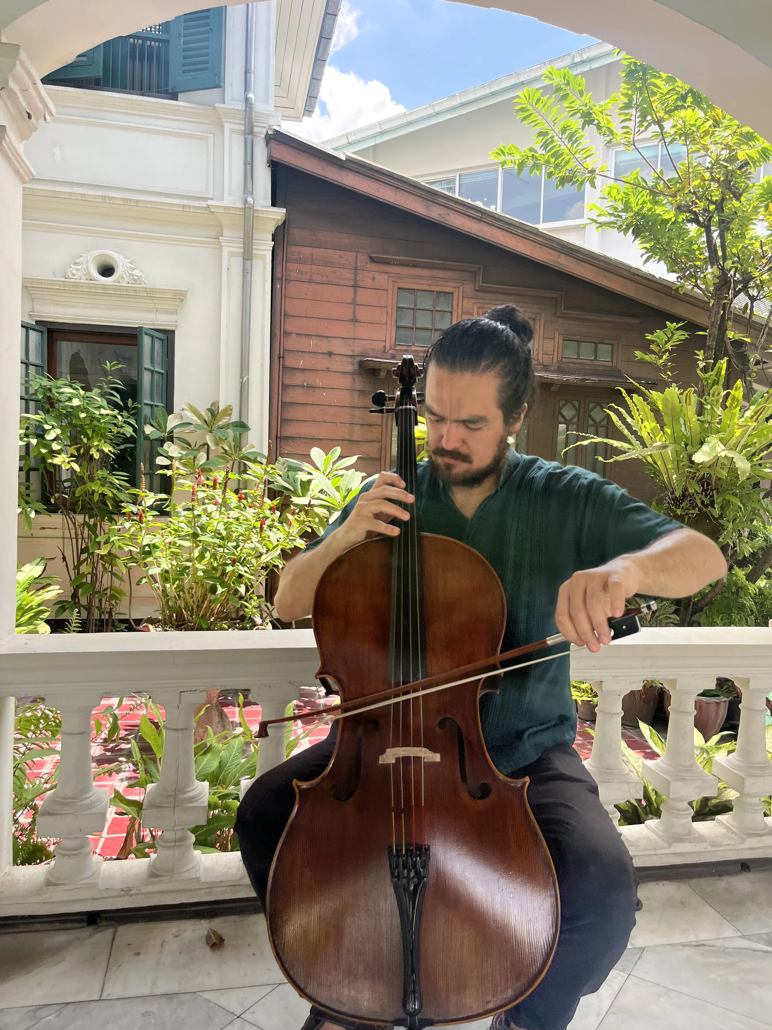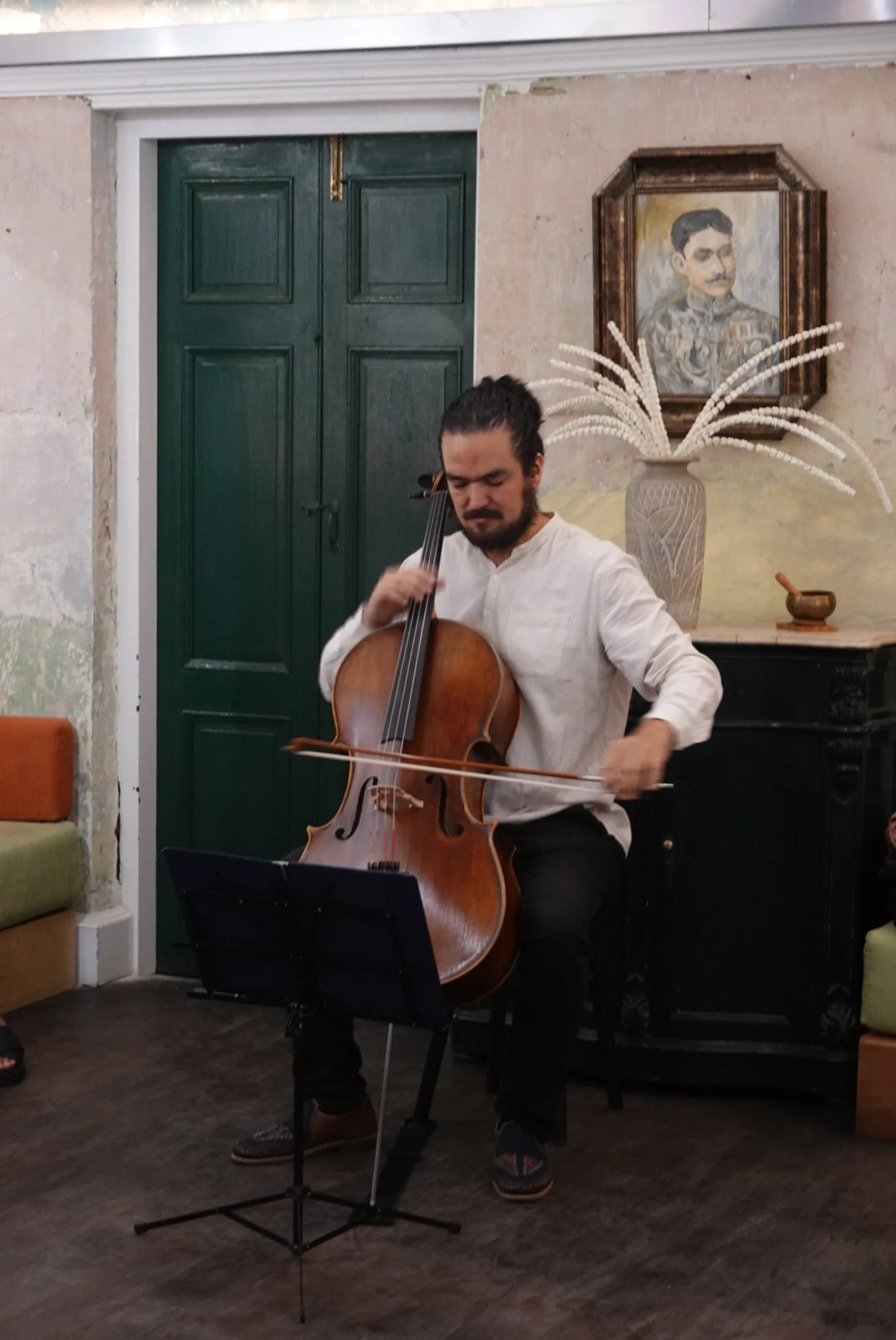 On August 19, 2025, cellist and cultural educator Jairo Ortiz performed at a special dinner hosted by Na Projects at Bangkok 1899, celebrating Nang Loeng’s rich culinary heritage through traditional recipes and stories. He performed music from the time period when Bangkok 1899 was originally built, as well as a couple of Mexican pieces. His recital complemented the dinner event that brought people back in time.