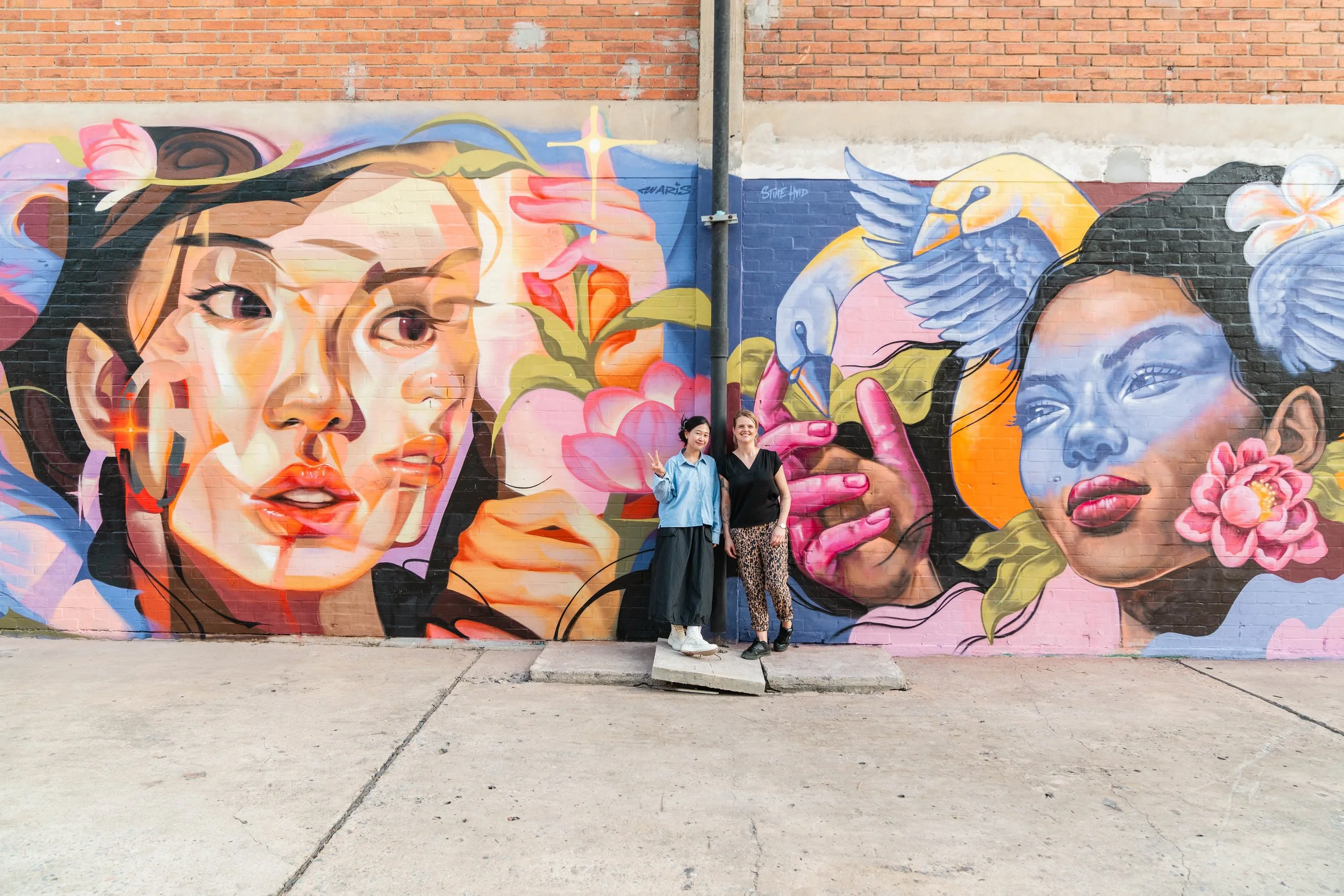 While in Bangkok, Waris and Stine worked on multiple projects around the city, including producing a mural at Benjakitti Park in celebration of International Women’s Day, in collaboration with the Embassy of Denmark in Thailand and the Bangkok Metropolitan Administration. The two artists also held an exhibition at Bangkok 1899’s Gallery Room to showcase their collaborative and individual works.